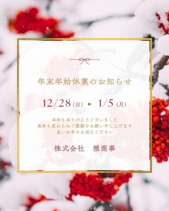 2025年12月28日(日)より2026年1月5日(月)まで年末年始休業とさせて頂きます。