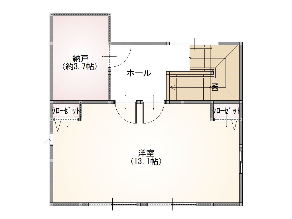 2階洋室はドアが2つあるので間仕切りすれば3SLDKに変更可能。
