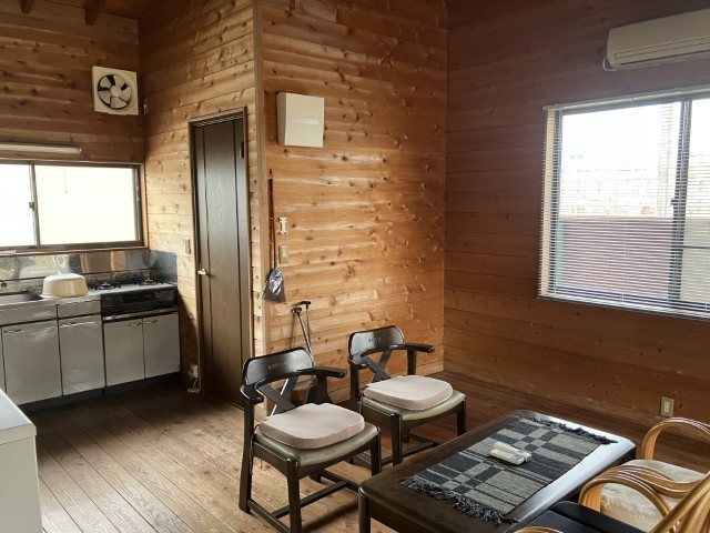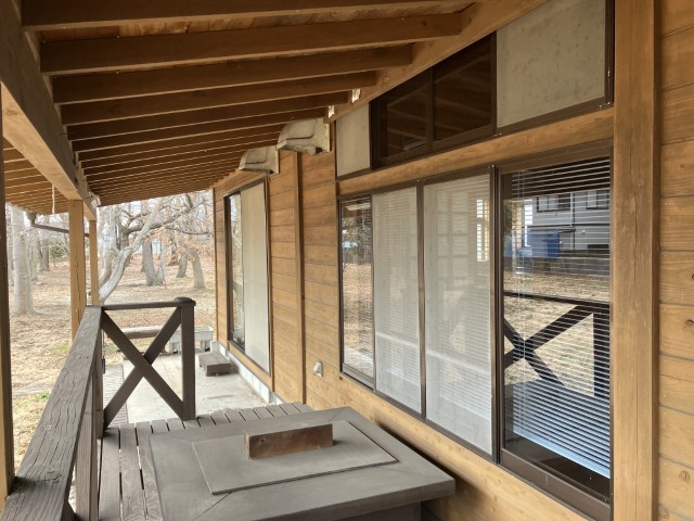 木の温もりを感じるログハウス風建物付き